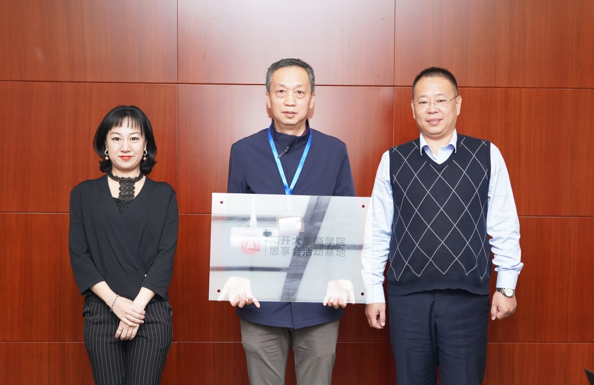交流會(huì)后,南開大學(xué)商學(xué)院思享會(huì)會(huì)長(zhǎng)吳志剛,秘書長(zhǎng)周游為泰達(dá)設(shè)計(jì)公司思享會(huì)活動(dòng)基地授牌。