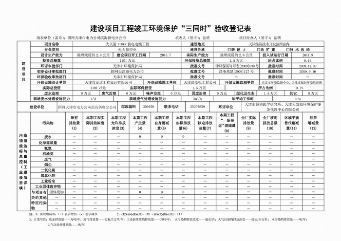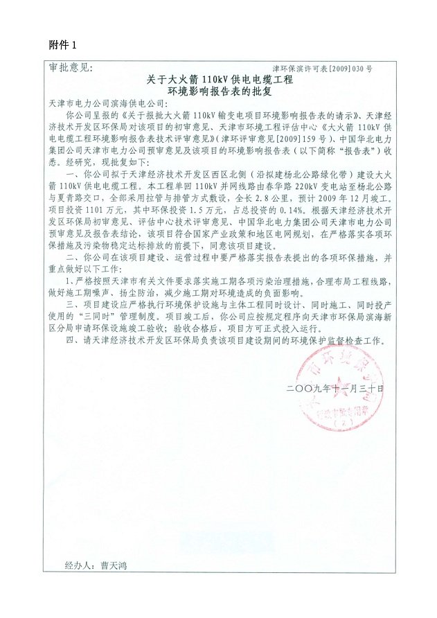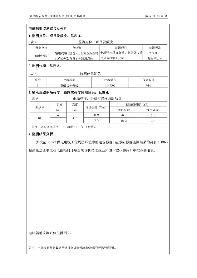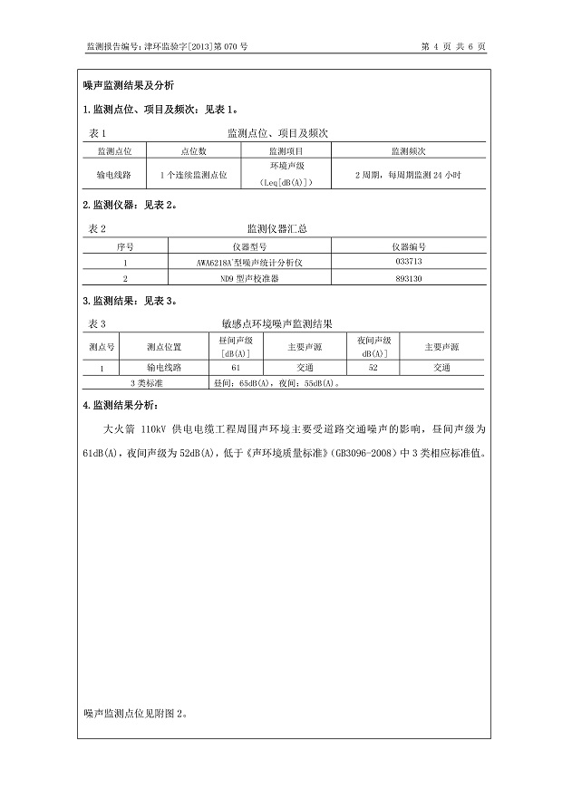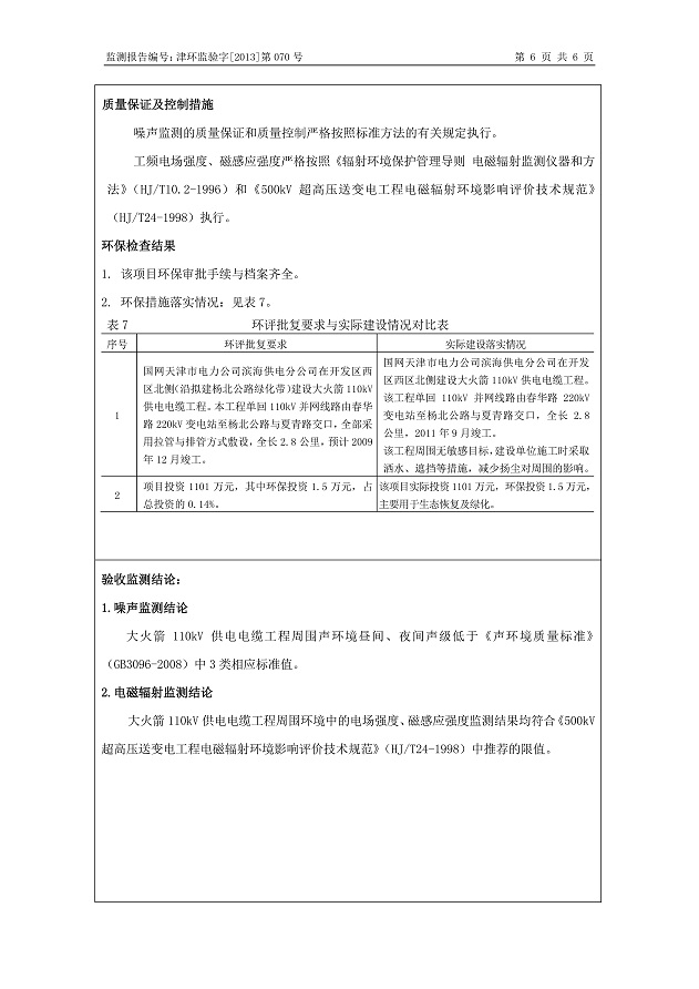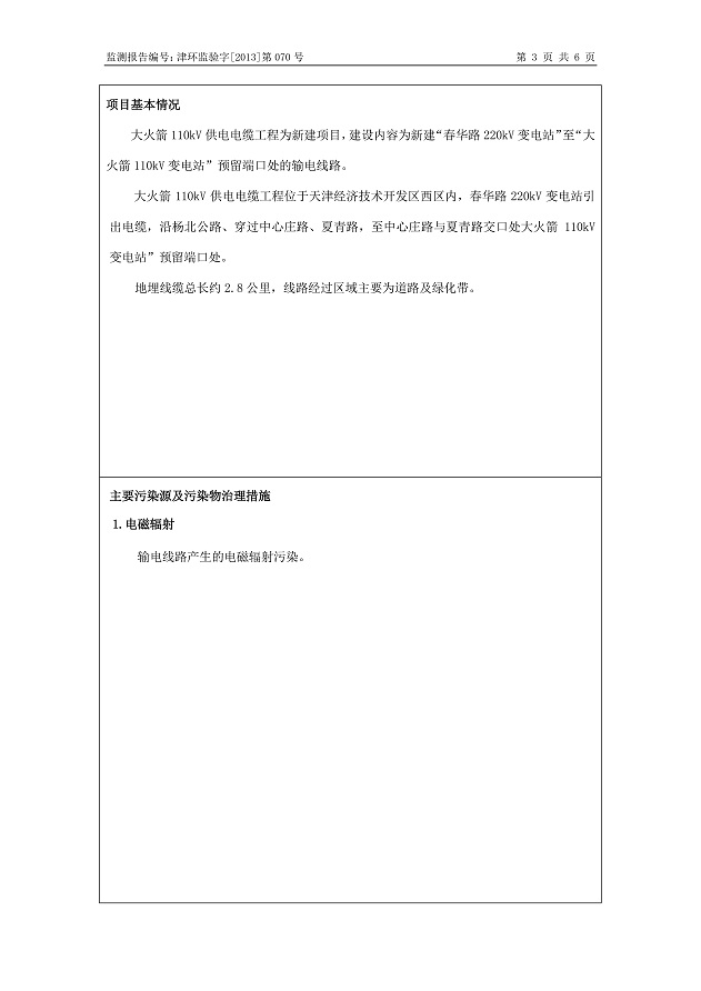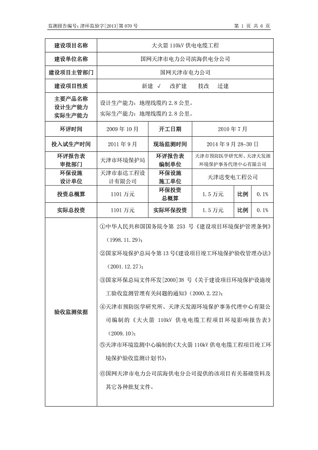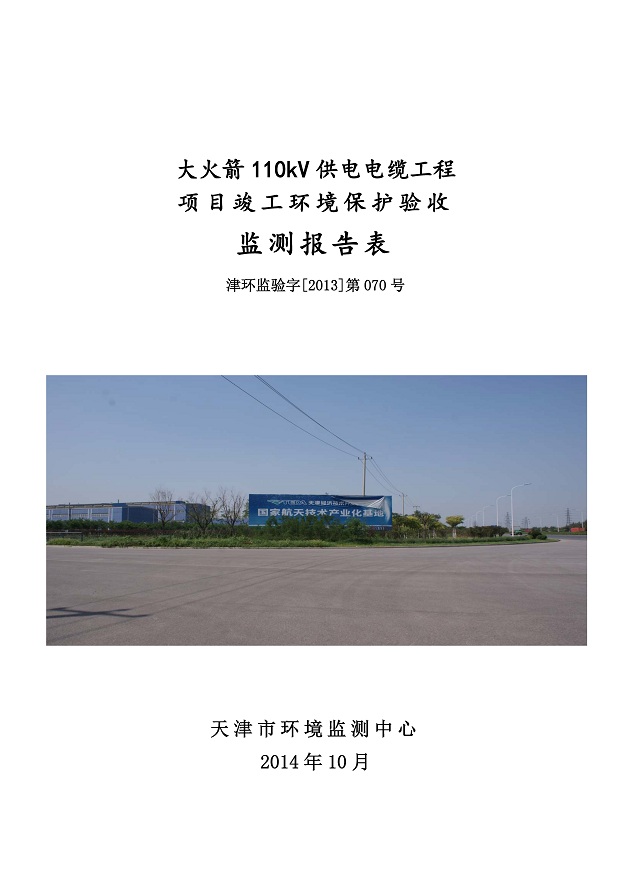 大火箭110kV供電電纜工程環(huán)保驗(yàn)收監(jiān)測(cè)報(bào)告表公示