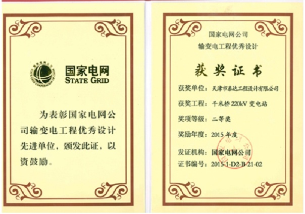 - 小荷才露尖尖角,國(guó)網(wǎng)優(yōu)設(shè)喜得籌2015年10月,我公司在2015年度國(guó)家電網(wǎng)公司輸變電工程優(yōu)秀設(shè)計(jì)先進(jìn)單位評(píng)選(簡(jiǎn)稱”國(guó)網(wǎng)評(píng)優(yōu)“)中再獲殊榮,我公司完成的“千米橋220kV變電站”設(shè)計(jì)榮獲了本年度二等獎(jiǎng)。
